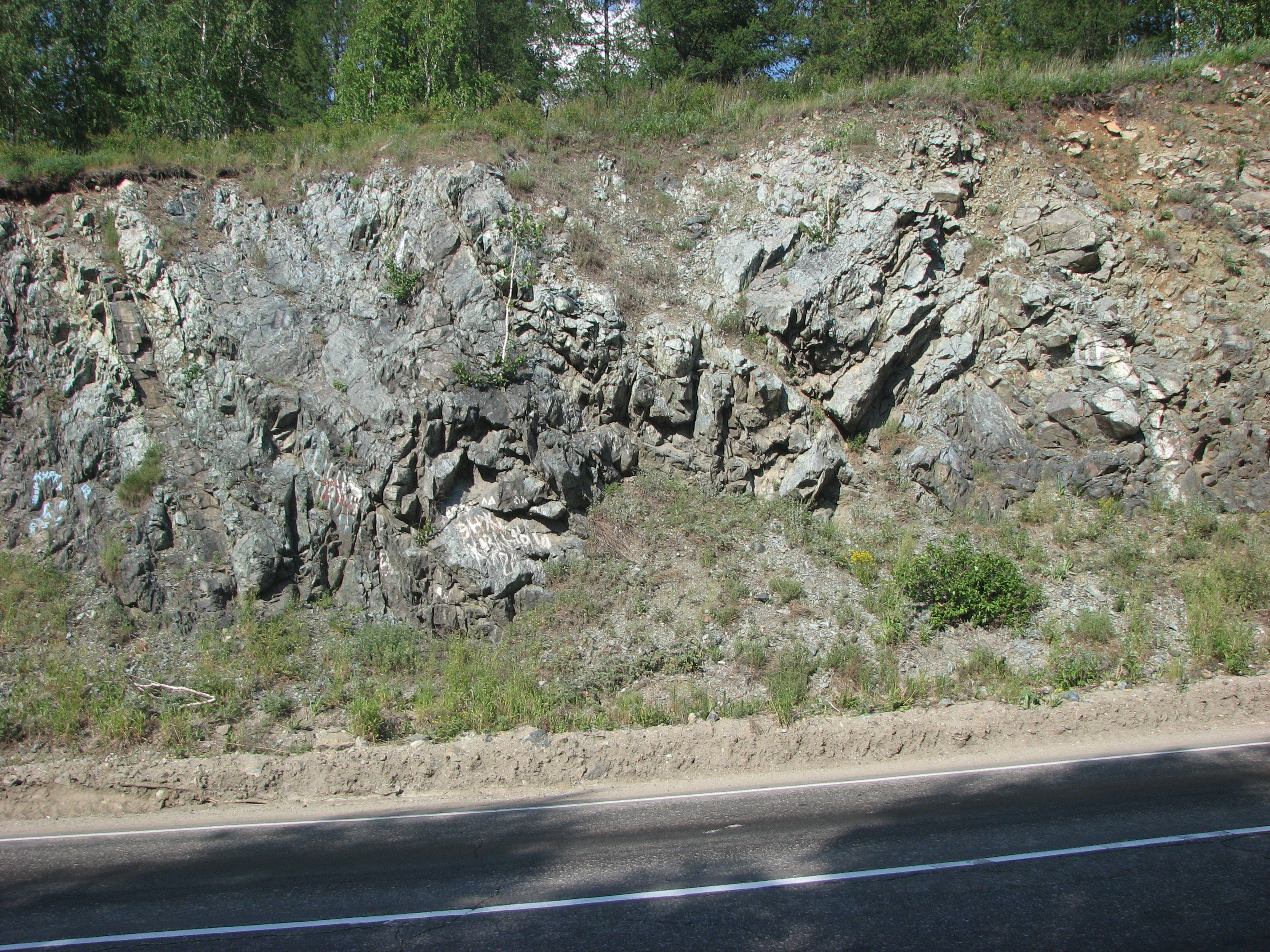 Геологический разрез зоны меланжа. Фото Баженова Е. А.