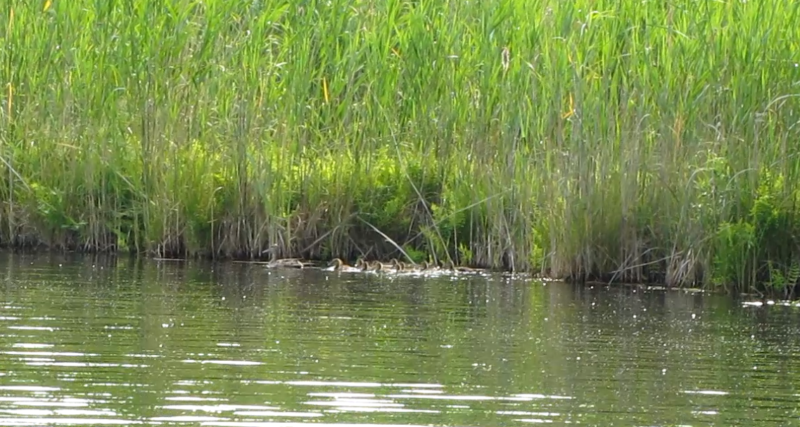 Утка с 10 утятами. Фото В.Г. Кориневского. Озеро Садок, июнь 2015 г..png