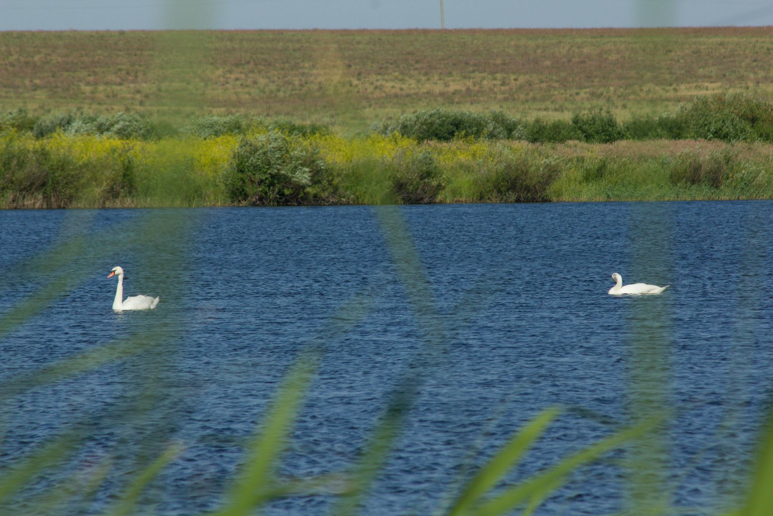 Лебеди в степном водоёме.Фото Евгения Баженова июнь 2014 г.