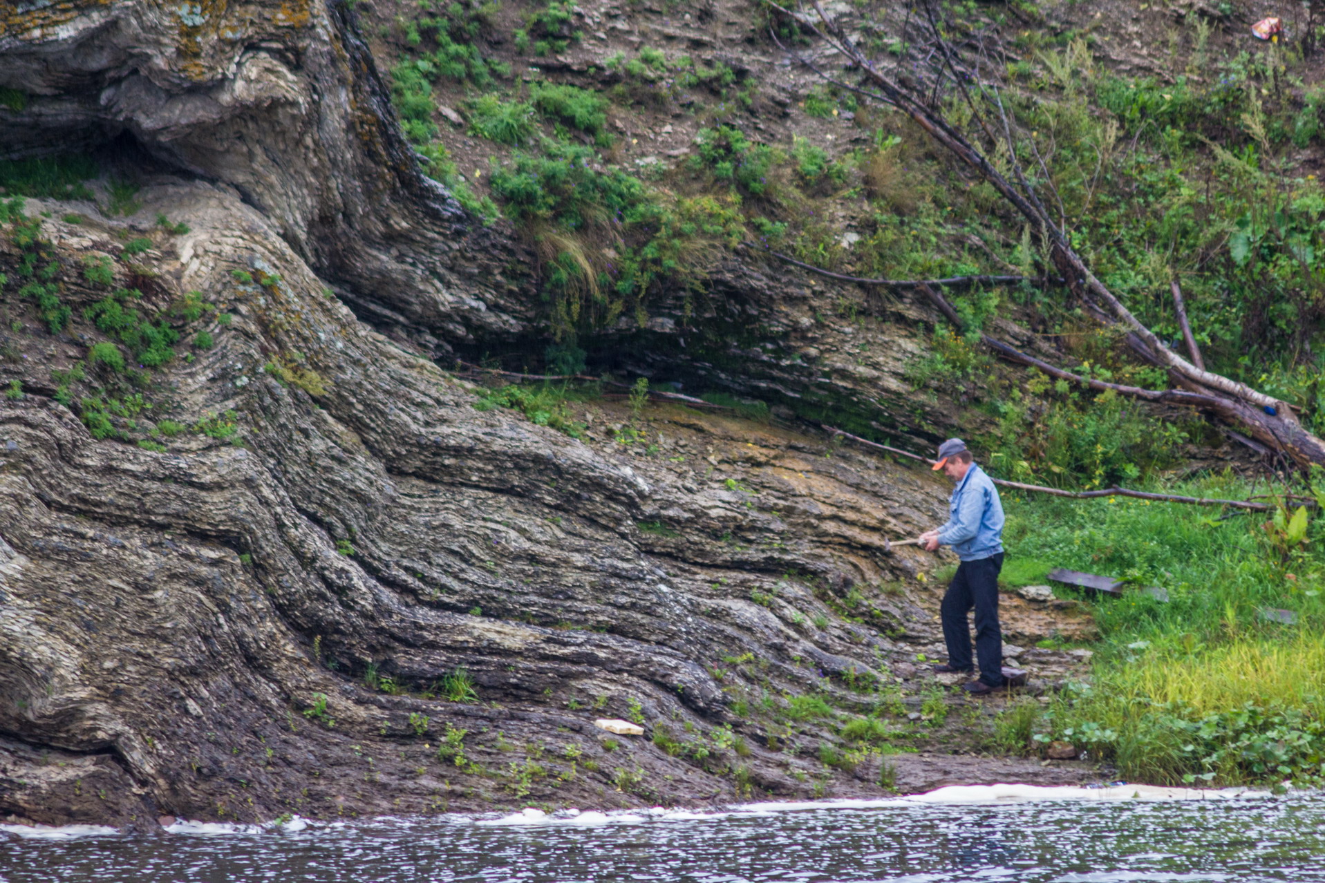 Бентосная фауна девонского моря в разрезе Габдюково. Фото Е. Баженова август 2013 г.